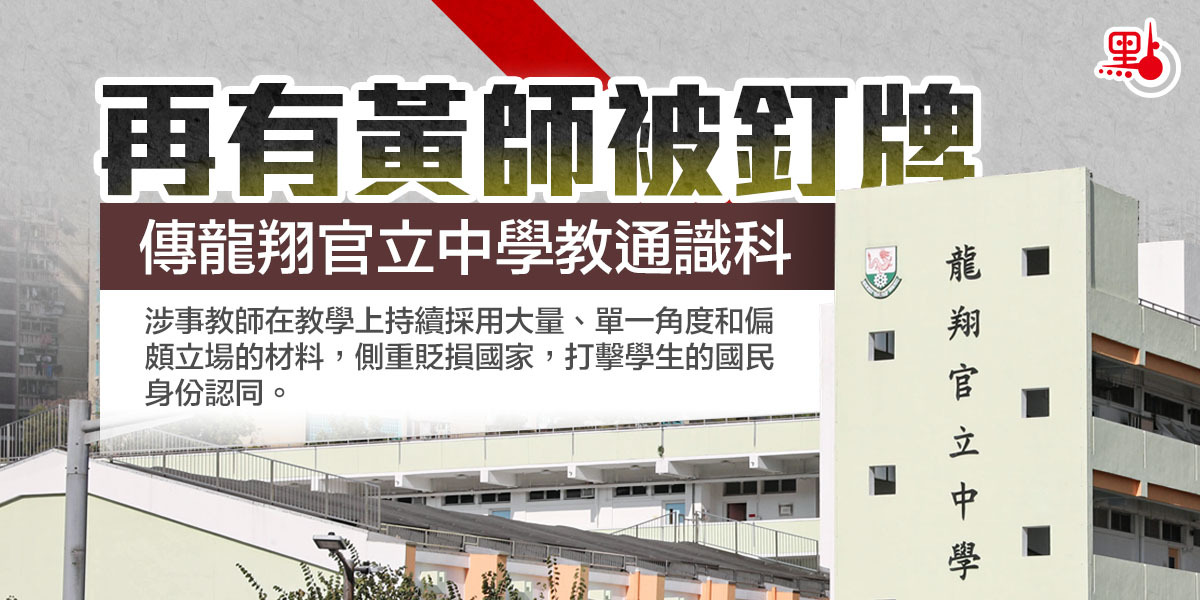 消息指,龍翔官立中學一名通識科教師被教育局取消註冊。教育局今日(30日)向立法會提交文件表示,指反修例風波以來,收到269宗教師專業失德的投訴,當局大致完成調查259宗個案,取消3名教師註冊資格,比教育局早前公布的2名教師多了1名。