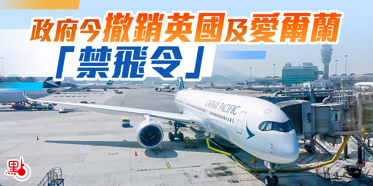 港府今日(7日)起撤銷對英國及愛爾蘭的「禁飛令」,回港人士持72小時無染疫陰性證明,及21晚指定檢疫酒店房間的確認書,便可以登機來港。