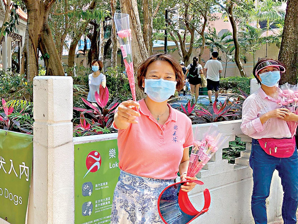 每逢母親節,不少子女會為母親送上康乃馨,答謝她們偉大的母愛和恩情。深水埗區議員劉佩玉在過去數個母親節,都會到酒家派發康乃馨,向平時為家庭子女辛苦操勞的母親們送上祝福。她笑說「女人無論三歲定八十,收到花都會開心」,每位街坊在接過她所送的花都會笑逐顏開。今年疫情下,她依然堅持進行派花的傳統活動,但改以「快閃」的方法到排檔送花,女兒更擔任小小送花使者,在疫情下,為偉大的母親打打氣。