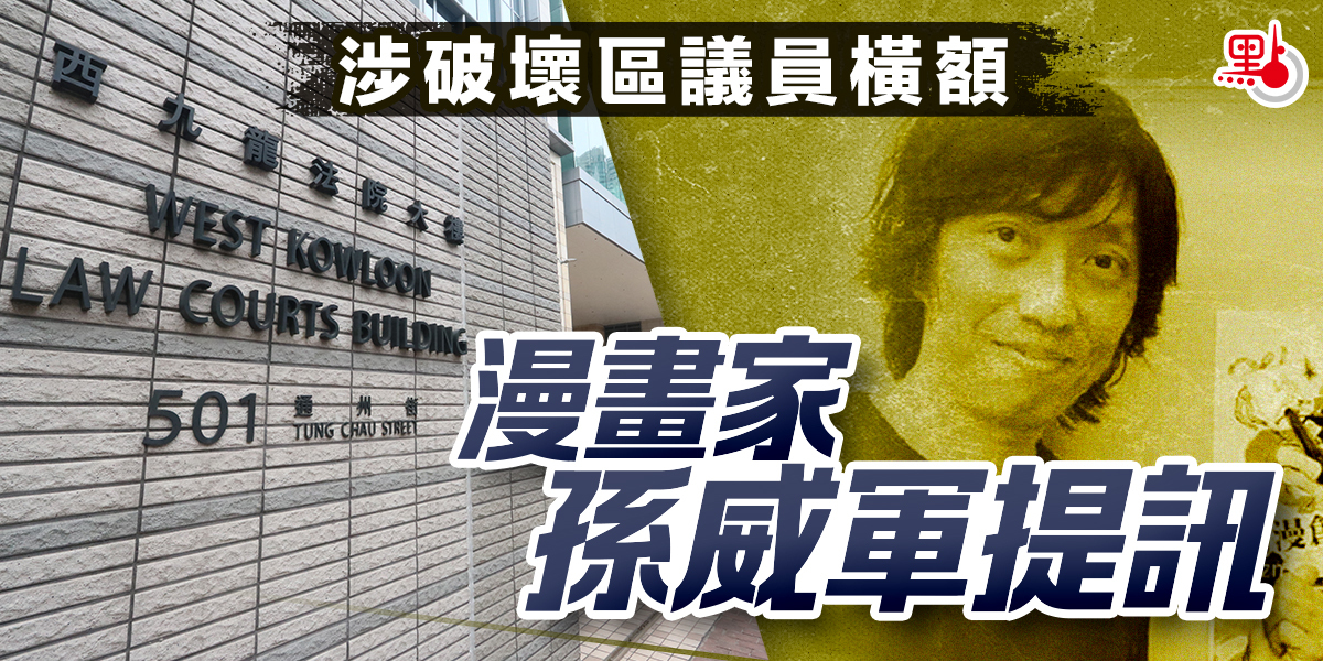 本地漫畫家孫威軍,涉嫌於上月1日破壞5張民建聯區議員盧婉婷的橫額,並於同日被捕。事隔超過一個月後,他被控一項刑事毀壞罪,案件今天(13日)在西九龍法院提堂,暫時毋須答辯。法庭應辯方要求,把案押後至7月8日再訊,期間被告獲准保釋。
