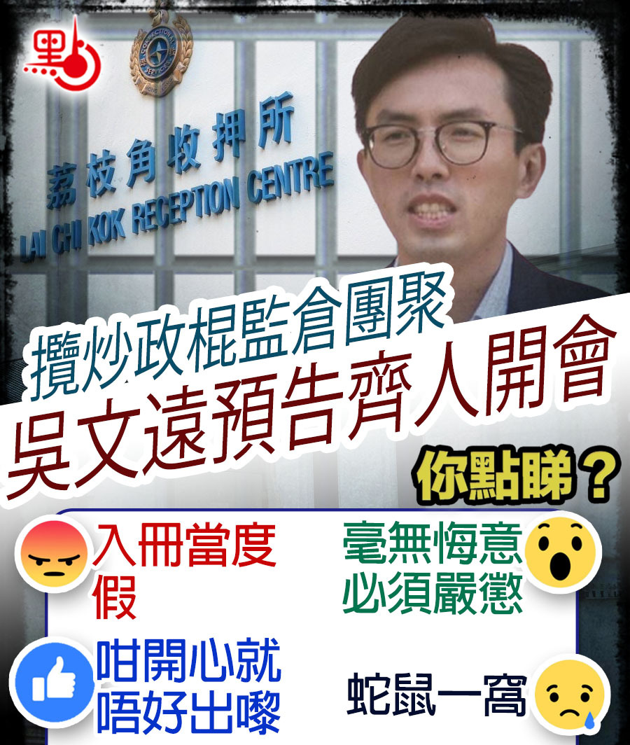 攬炒政棍相繼入獄,涉前年「十一」非法集結案被還柙的社民連秘書長吳文遠,其fb小編噚日探監後發文話,吳文遠喺荔枝角收押所同「支聯會」主席李卓人做咗「鄰居」,大家更上至天文,下知地理,無所不談喎。