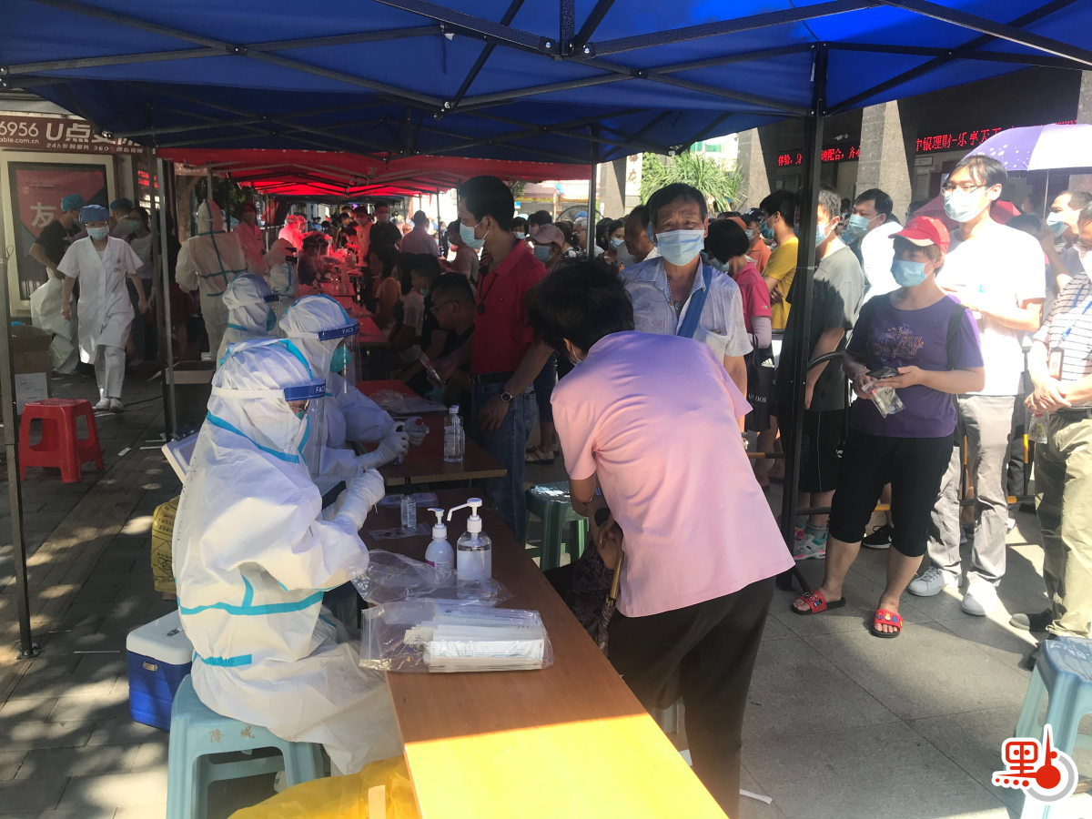 點新聞記者注意到,與20日相比,龍津街道各社區人員活動明顯減少,不少商鋪、地產中介已經暫停營業。當地設立了多個集中核酸檢測點。在位於龍津華府小區附近的檢測點,數百名居民前來做檢測。地產中介梁先生告訴點新聞記者,「我是附近一家地產中介的,據說那位阿婆有經過我們店面,大家還是有點擔心,所以我們員工都來做檢測了。」