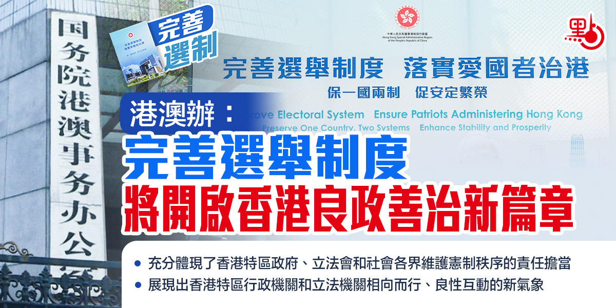 香港特區立法會今日(27日)審議通過《2021年完善選舉制度(綜合修訂)條例草案》,國務院港澳辦發言人今日發表談話表示,這標誌着完善香港特區選舉制度涉及的本地立法工作全面完成。這是依法治港、撥亂反正的又一重大制度成果,將開啟香港良政善治新篇章。