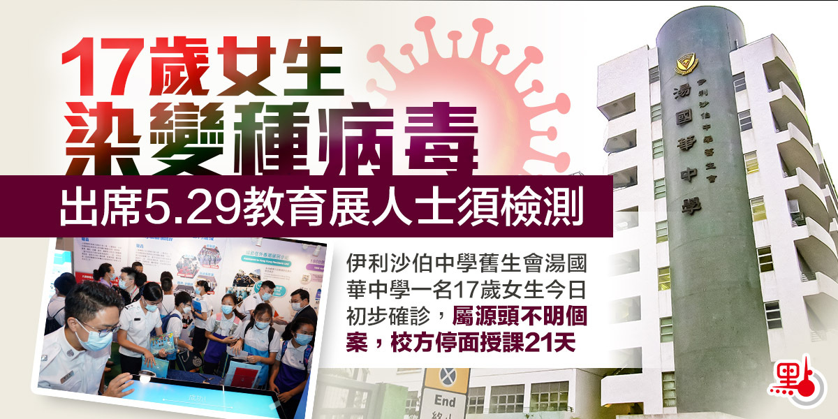 本港新冠肺炎疫情漸趨緩和,不過本地「零確診」紀錄或再「斷纜」。伊利沙伯中學舊生會湯國華中學一名17歲女學生今日(4日)初步確診,屬本地源頭不明個案,並驗出帶有N501Y變種病毒。她最後一次回校日期為6月2日,學校今日至6月24日停止面授課21天。