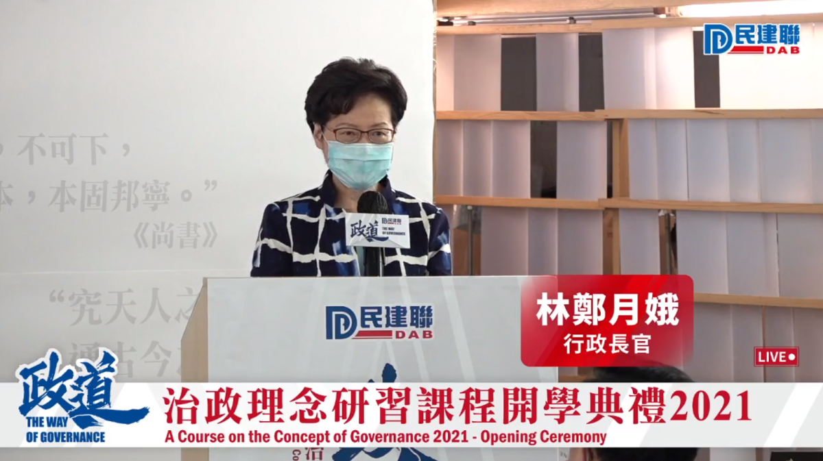 民建聯今日(5日)舉辦「政道──治政理念研習課程」開學禮,行政長官林鄭月娥出席並致辭表示,要施政暢順,需要大量有能力的治港人才。選舉並非從政唯一出路,要真正在行政主導中發揮管治效能,就要走入特區政府這個「熱廚房」,才可為香港「烹調出盛宴佳餚」。