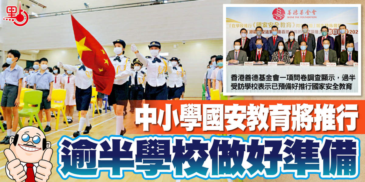 教育局早前為15個科目推出國家安全教育課程框架,國安教育納入中小學課程。香港善德基金會一項有關「在學校推行國安教育」的問卷調查收到218間中小學及幼稚園回覆,結果顯示,54%受訪學校表示已做好整體預備,約八成受訪學校表示有關框架在執行上有困難,但認同可以解決。
