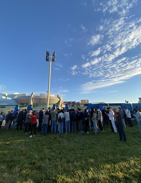 早在凌晨5點多,參加儀式的人們就從四面八方趕來。現場的人們高聲唱着《歌唱祖國》,揮舞紅旗和鮮花,為神舟十二號的飛行員勇士壯行。