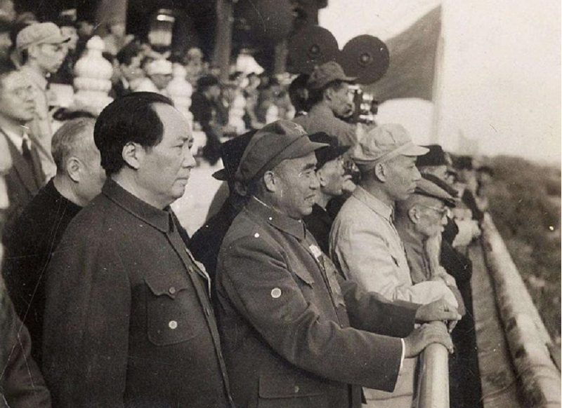 1949年10月1日下午3時,開國大典在北京天安門廣場隆重舉行。中央人民政府秘書長林伯渠宣布開始。主持儀式的為毛澤東、朱德、劉少奇、周恩來、宋慶齡、李濟深、張瀾、高崗等人。參加儀式的還有中國人民政治協商會議第一屆全體會議全體代表,工人、農民、市民、學校師生、機關工作人員、城防部隊等約30萬人。