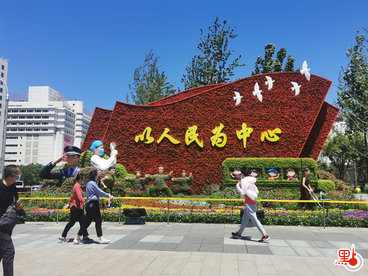 新冠疫情暴發以來,白衣天使奮戰「疫」線,在抗擊疫情中發揮了中流砥柱的作用。今次西單東北角的慶祝花壇突出「以人民為中心」,其中身穿白色大褂、戴着藍色口罩的白衣天使在工作的形象格外顯眼。