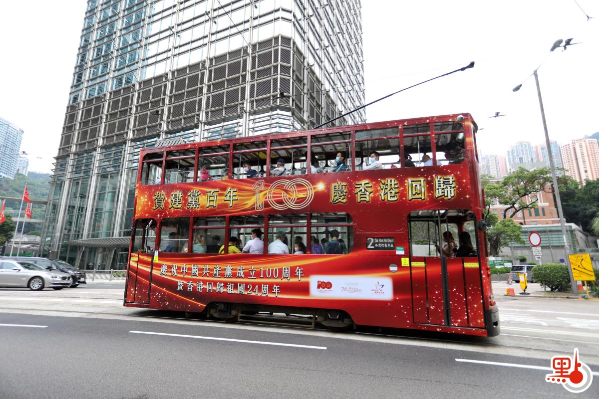今年是中國共產黨成立100周年,再過幾天就是中國共產黨百年華誕,也是香港回歸祖國24周年紀念日。點新聞記者在香港街頭看到,有多輛巴士及電車車身噴上「賀建黨百年 慶香港回歸」的慶祝標語,迎接中國共產黨百年華誕和香港回歸祖國24周年紀念日的到來。