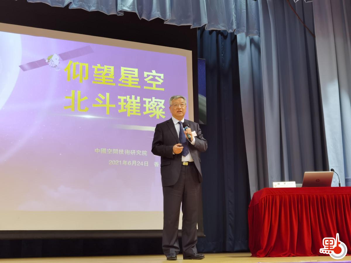 國家級航天專家22日起訪港,連續多日與大、中、小學生進行分享交流。北斗導航工程副總設計師、北斗三號衛星首席總設計師謝軍今日(25日)來到保良局甲子何玉清中學,他以「仰望星空 北斗璀璨」為主題發表演講,分享航天經歷和心得。演講開始前,保良局羅氏基金中學的學生親手製作了視頻,學生們在視頻中表示,以此向我國所有的航天科學家致敬。
