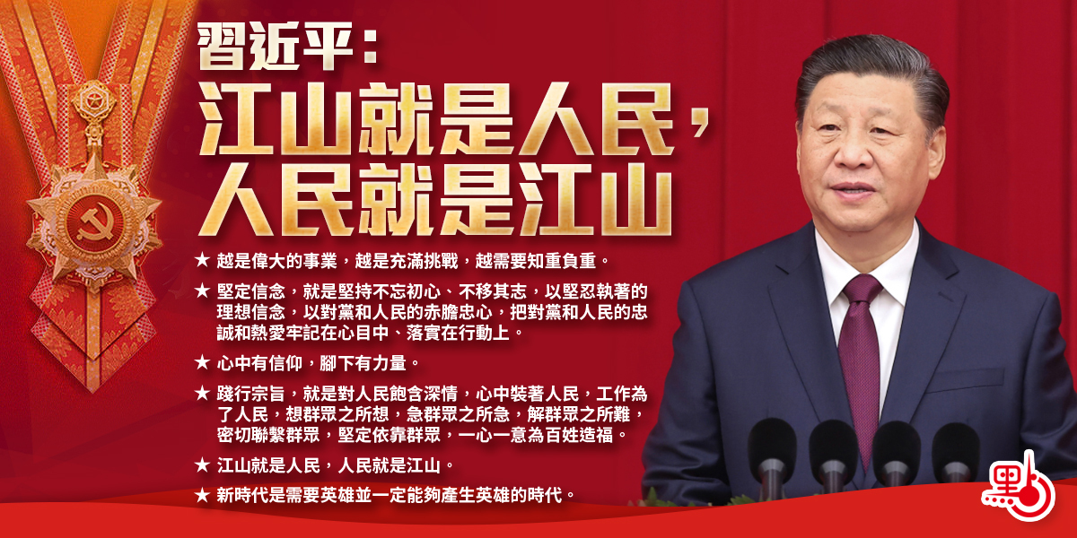 慶祝中國共產黨成立100周年「七一勛章」頒授儀式於今日(29日)上午在人民大會堂舉行,中共中央總書記、國家主席、中央軍委主席習近平首次頒授「七一勛章」並發表重要講話。習近平指出,一百年來,中國共產黨矢志踐行初心使命,團結帶領人民開闢了偉大道路、建立了偉大功業、鑄就了偉大精神、積累了寶貴經驗,在中華民族發展史和人類社會進步史上寫下了壯麗篇章。習近平諄諄告誡全黨,江山就是人民,人民就是江山。