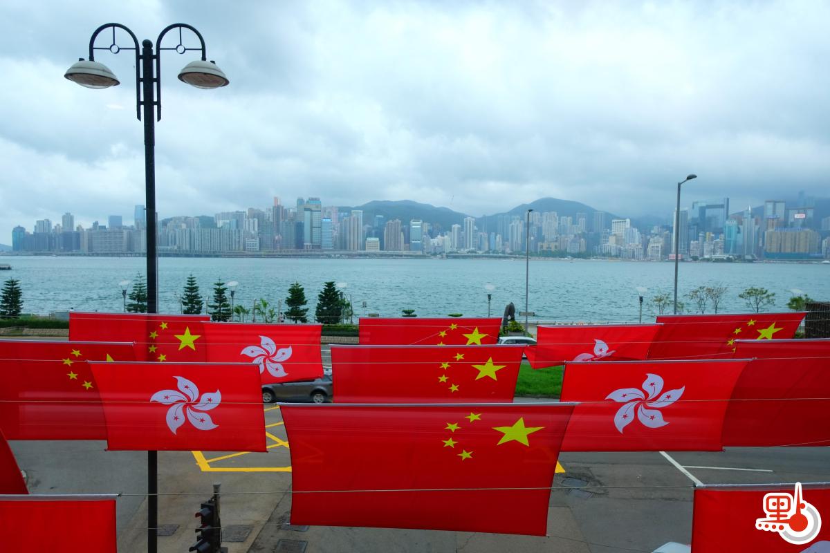 今年7月1日是中國共產黨成立100周年和香港回歸祖國24周年紀念日。為慶祝回歸,今日(29日)香港尖沙咀東麼地道—尖沙咀中心街頭掛滿中華人民共和國國旗和香港特別行政區區旗。