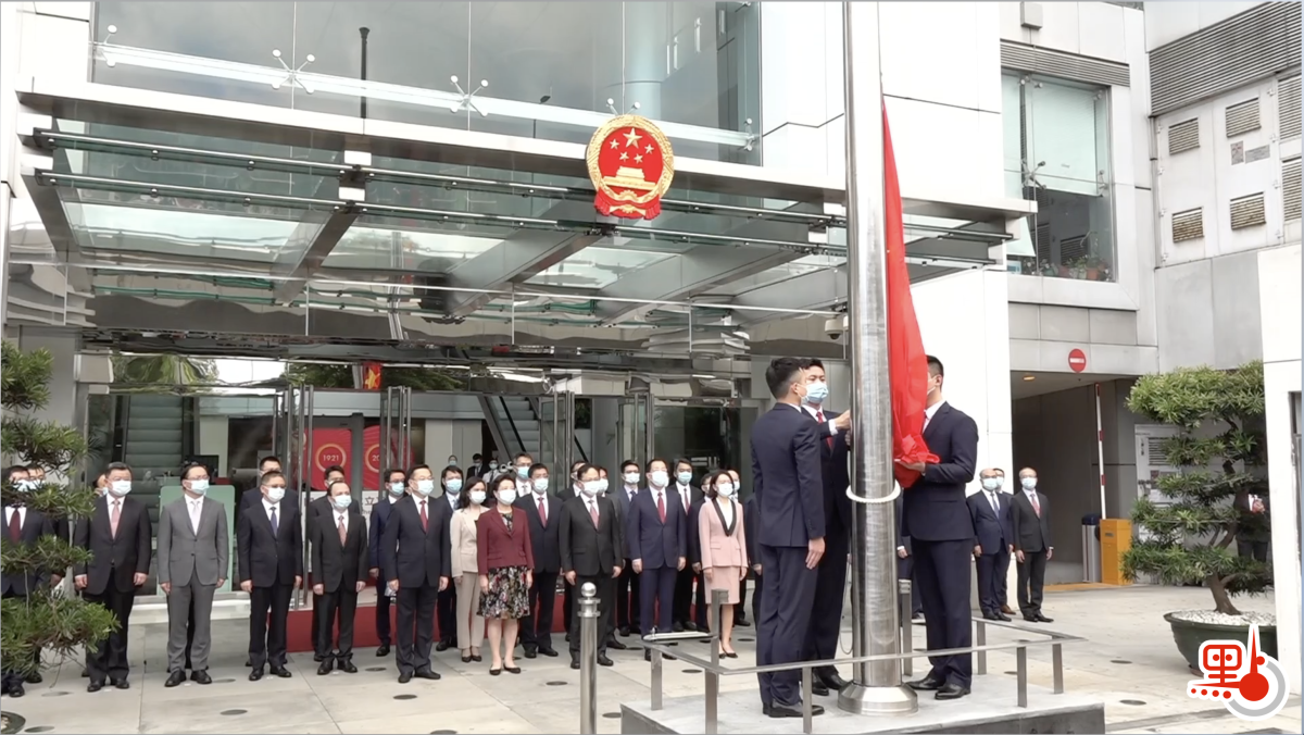 7月1日,中央人民政府駐香港特別行政區聯絡辦公室舉行「七一」升國旗儀式,慶祝中國共產黨成立100周年和香港回歸祖國24周年。