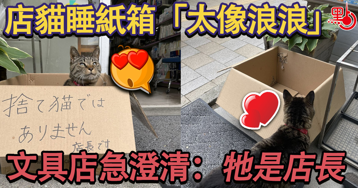 日本長野縣一間文具店的貓咪店長,除了喜歡在店內四處遊走,更喜歡躺進門外的紙盒中休息,牠無辜可憐的模樣讓不少途人誤以為牠被人遺棄。店東見狀,無奈在紙盒外寫上「牠不是被遺棄的貓咪,牠是店長!」,以正視聽。