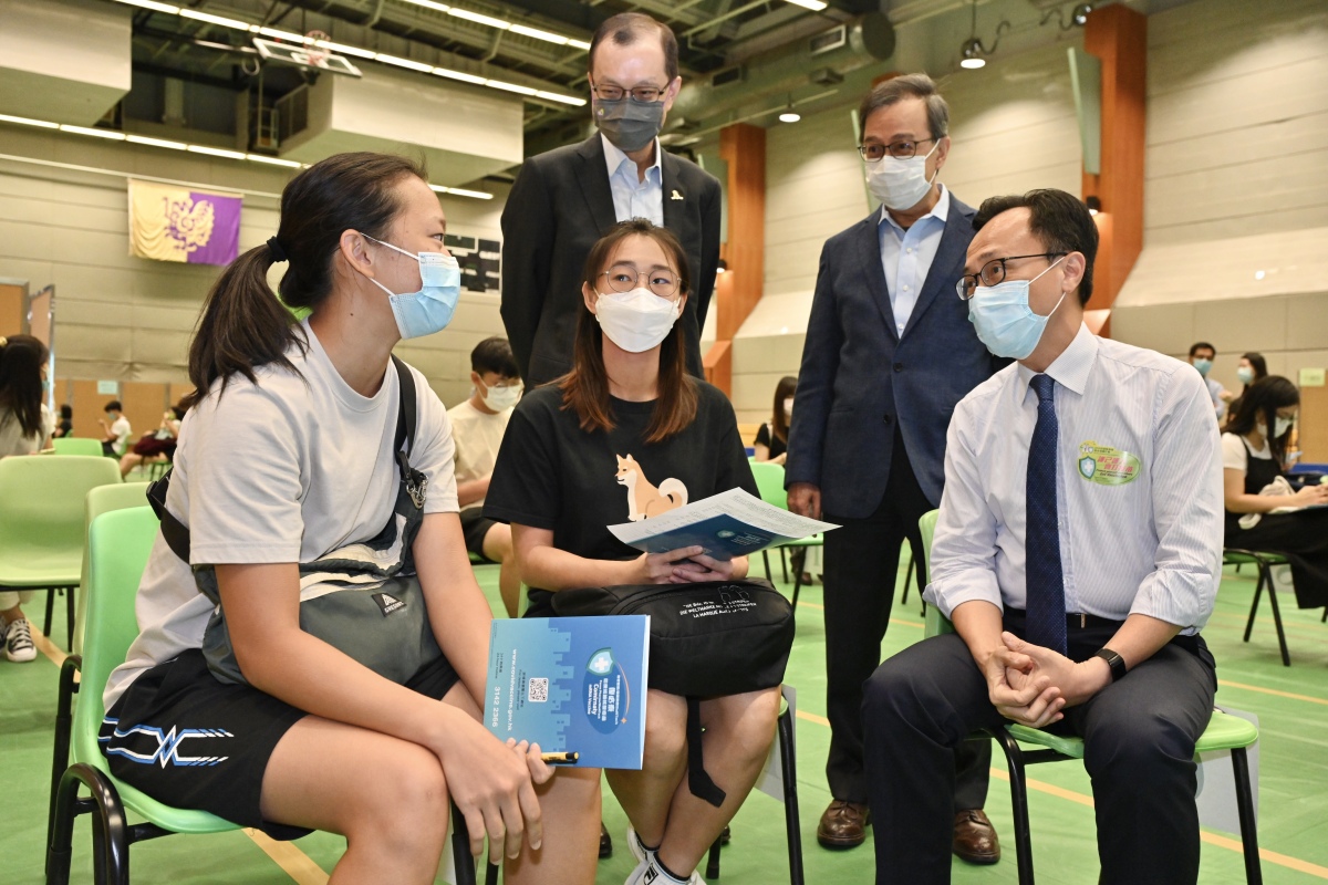 公務員事務局局長聶德權今日(14日)到訪香港中文大學,與中大署理校長兼常務副校長陳金樑教授和副校長(行政)吳樹培,一同了解該校學生和教職員在校園透過政府外展服務接種新冠疫苗的情況。外展隊今明兩日會為中大超過400名人士接種復必泰或科興疫苗。