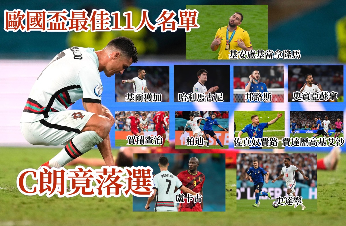 歐國盃賽會公布賽事最佳11人名單,未知是實事求是,抑或「分豬肉」皆大歡喜,已經榮膺本屆神射手的C朗拿度竟然榜上無名。這位36歲球星以5球1助攻力保金靴獎,但由於在16強已經被比利時隊淘汰出局,落選11人大軍也許是有其道理。