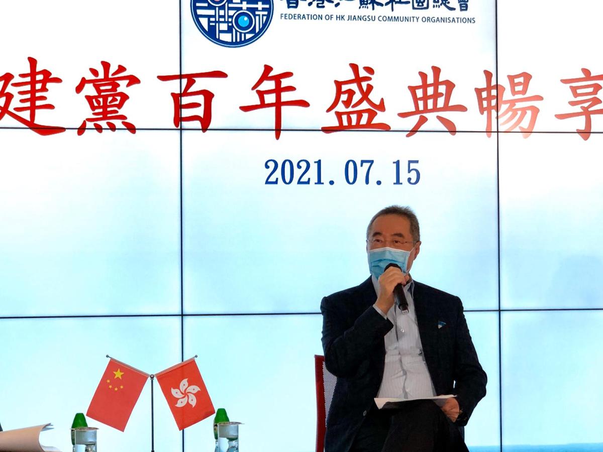 香港江蘇社團總會今日(15日)舉行「建黨百年盛典暢享會」,會長唐英年及常務副會長兼秘書長姚茂龍分享了赴京出席中國共產黨建黨百年慶典活動的感受。唐英年形容,7月1日當天在天安門城樓上觀看慶典活動,場面壯觀,在場人士都興奮激動。