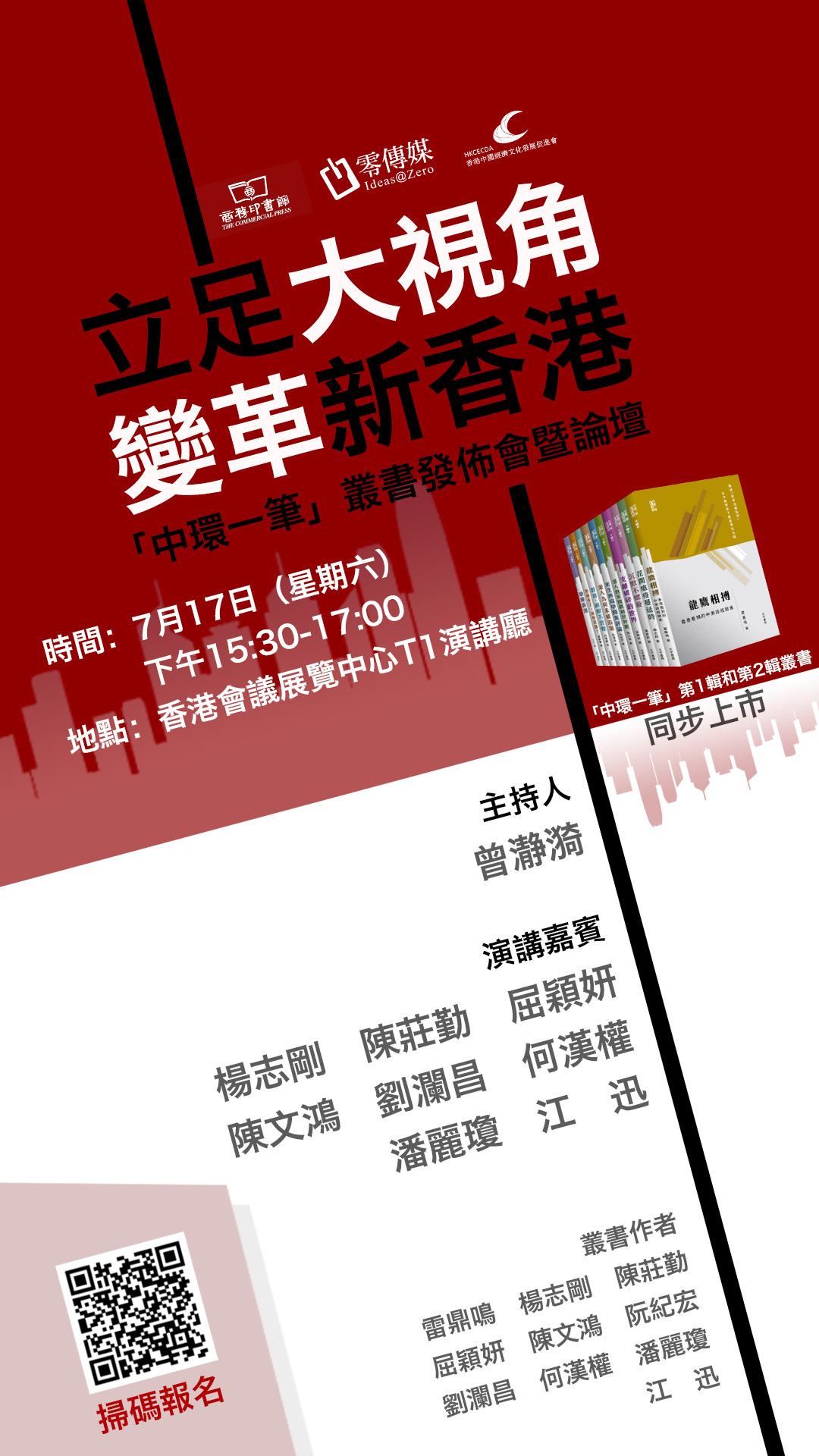 香港書展本月14至20日舉行,商務印書館舉辦一系列活動,其中立足大視角,變革新香港「中環一筆」叢書發布會暨論壇今日(17日)下午3點半至5點在灣仔會展中心舉行。