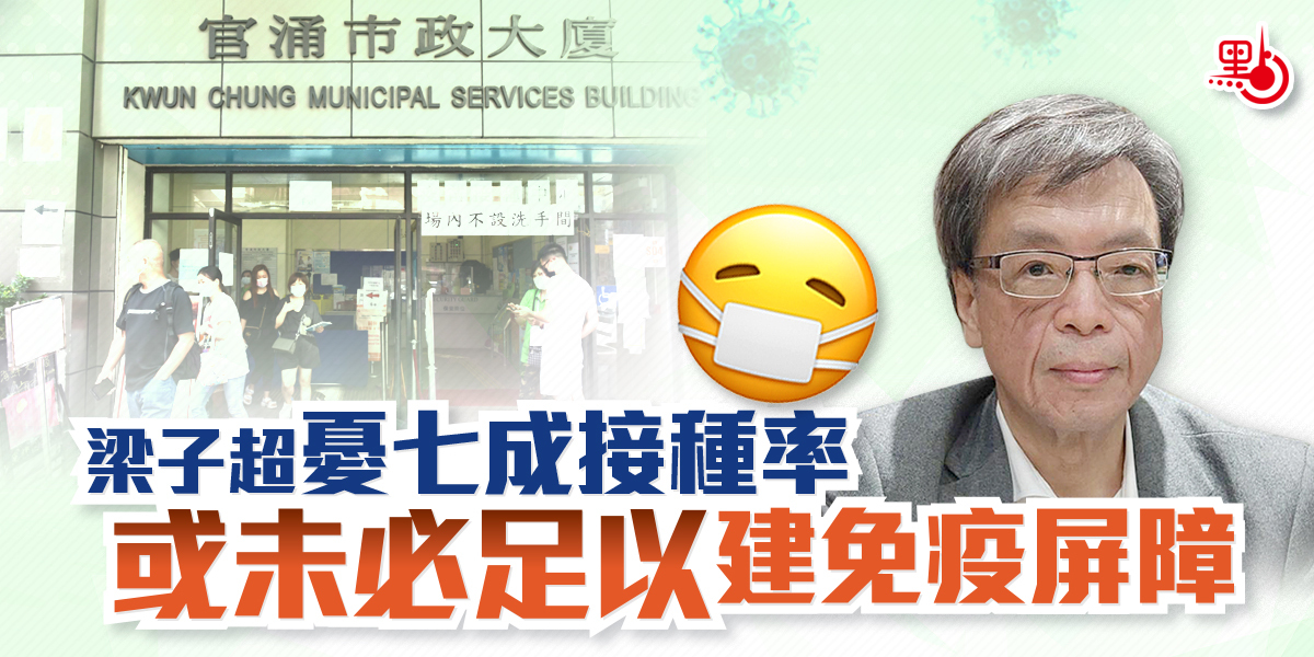 早前行政長官林鄭月娥透露,與內地通關條件之一為達至七成疫苗接種率。呼吸系統專科醫生梁子超今日(19日)在一個電台節目預料,本港應可於9月底達到七成接種率,但他認為現時疫苗對變種病毒保護力低,即使接種率達至七成,都未必足以建立免疫屏障。