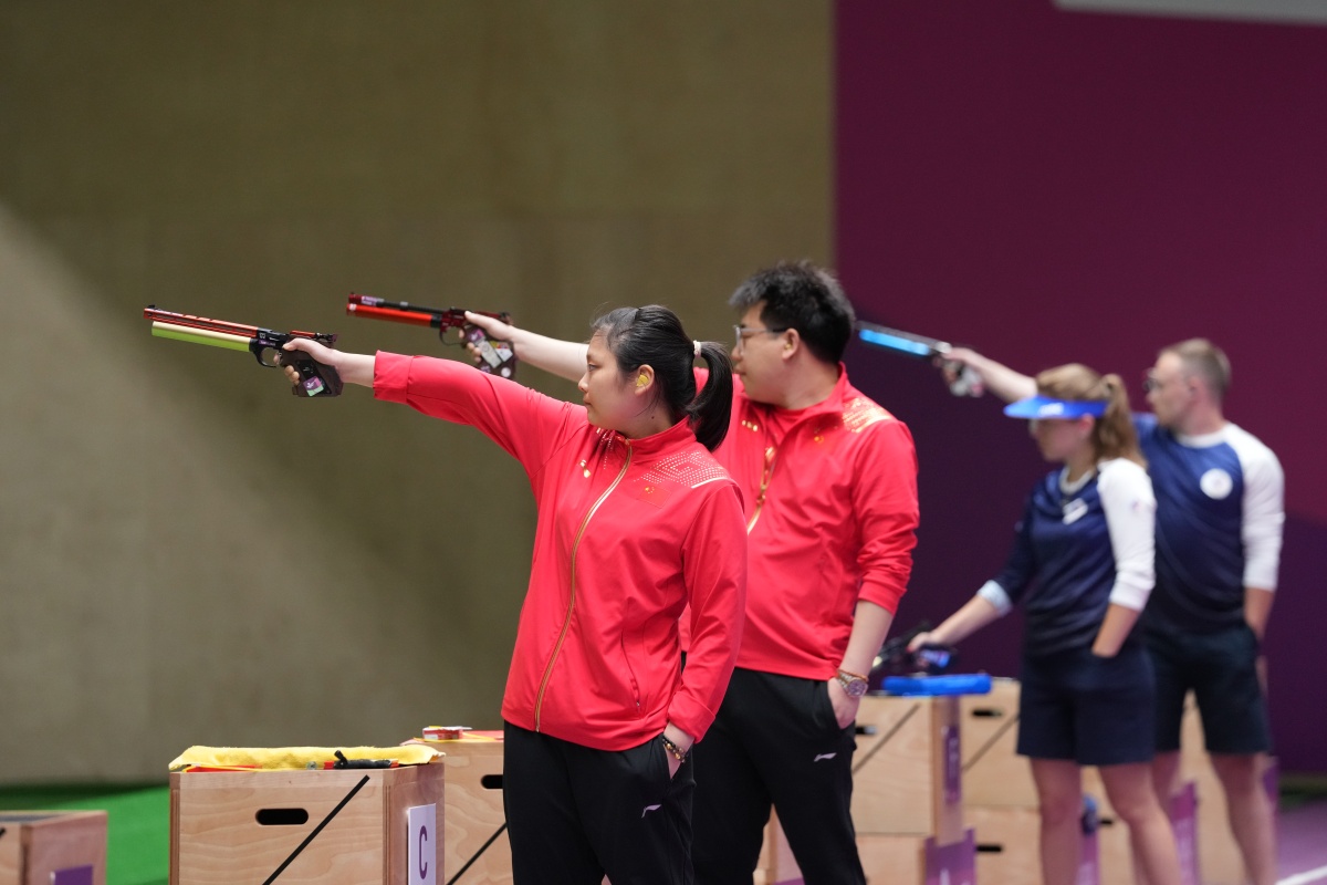 10米氣手槍混合團體是一個新設的奧運項目,此次共有20隊參加。龐偉和姜冉馨在開賽後前兩天舉行的10米氣手槍個人項目上分獲男女銅牌。