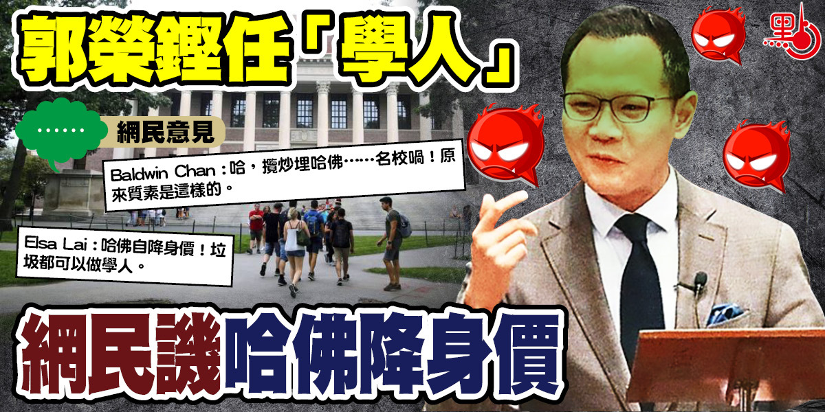 早前已經舉家「走佬」加拿大的前公民黨成員郭榮鏗,銷聲匿跡一段時間後,近期忽然「水鬼升城隍」,成為美國哈佛大學甘迺迪學院亞洲學人。唔少網民都質疑佢有乜學術水平,「你去當學人,唔擔心拉低大學嘅聲望嗎?」,認為佢出任呢個位真係攬炒哈佛咁話。