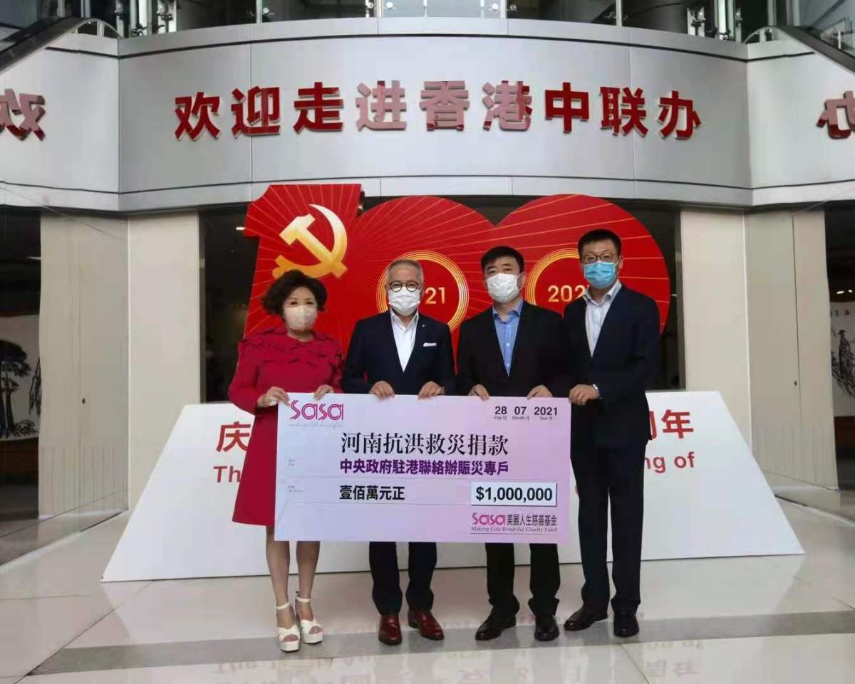 莎莎SaSa美麗人生慈善基金今日(28日)通過中聯辦為河南抗洪救災捐款100萬元。