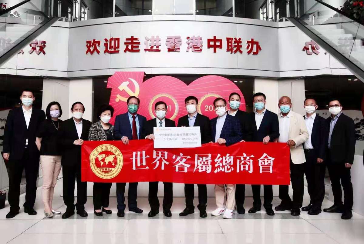 世界客屬總商會今日(28日)通過中聯辦為河南鄭州市賑災捐款50萬元。