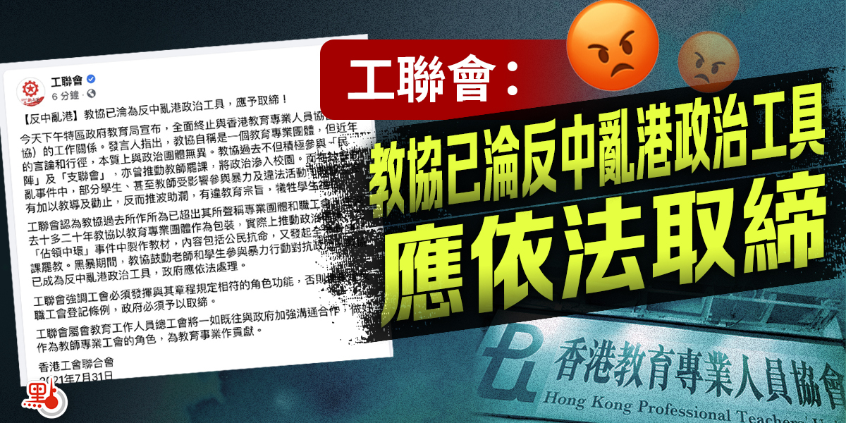 工聯會強調,工會必須發揮與其章程規定相符的角色功能,否則便是違反職工會登記條例。教協已成為反中亂港政治工具,政府應依法處理。