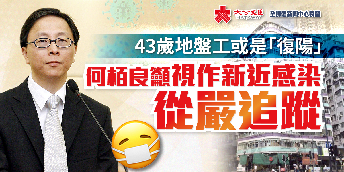 本港一名43歲地盤燒焊工早前在新冠病毒定期檢測中結果呈陽性,衞生防護中心認為屬「復陽」個案。香港大學感染及傳染病中心總監何栢良今日(5日)在一個電台節目指,目前還未能判斷該名患者是最近受感染,抑或是「復陽」個案。不過他認為,在未弄清楚情況之前,應該將個案視為新近感染,相關隔離檢疫及追蹤工作要從嚴。