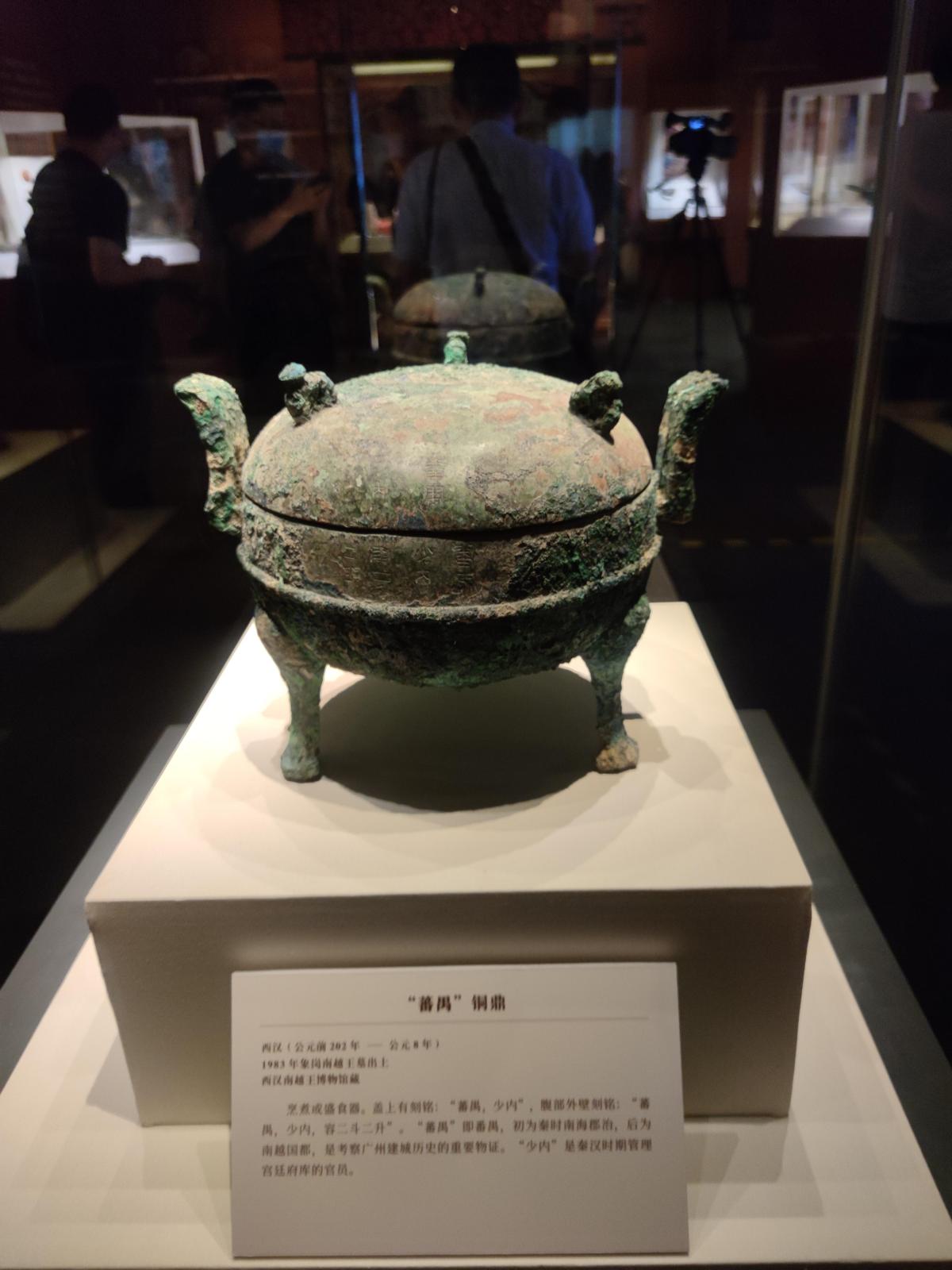 中國目前考古發現最大的一枚西漢金印「文帝行璽」金印、考古出土的唯一一件絲縷玉衣、「嶺南第一簡」、廣州城市建設史的重要物證「蕃禺」銅鼎……「海宇攸同——廣州秦漢考古成果展」今天(10日)在中國國家博物館開幕。332件(套)廣州地區出土的秦漢時期精品文物亮相。