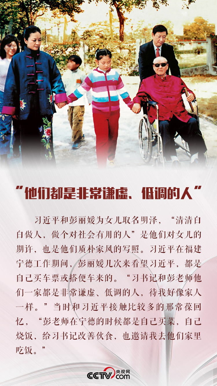 孝敬父母、愛護妻兒,習近平把家庭看得很重。他曾在接受媒體採訪時說,「我有一個很幸福的家庭,夫妻倆都有自己的事業,但是對家庭都是共同去建設這個家庭。」