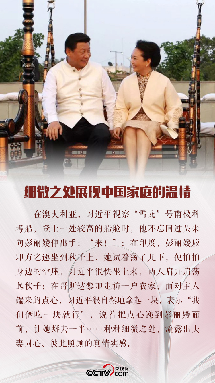 習近平和妻子彭麗媛已攜手走過三十餘個寒暑。他的辦公室裏放着她的照片,她陪他回到闊別多年的梁家河看望老鄉,他們的服裝搭配、舉手投足間總有默契……種種細微之處,流露出夫妻同心、相伴相守的幸福美滿。