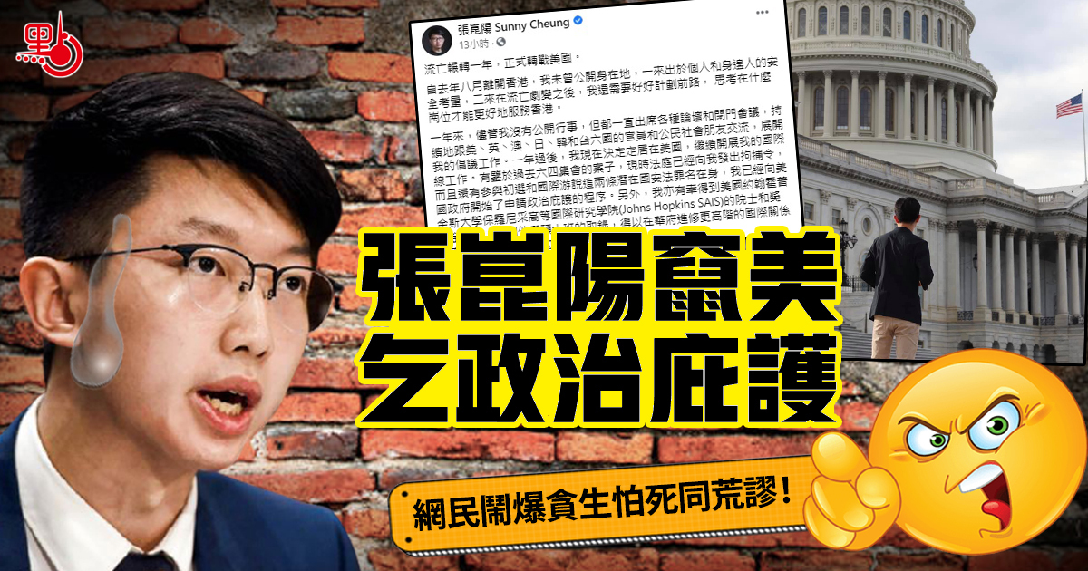 因涉嫌違反香港國安法而潛逃海外,正被警方通緝的前香港大專學界國際事務代表團的張崑陽,噚日在社交平台宣布「正式轉戰美國」,並已申請政治庇護。