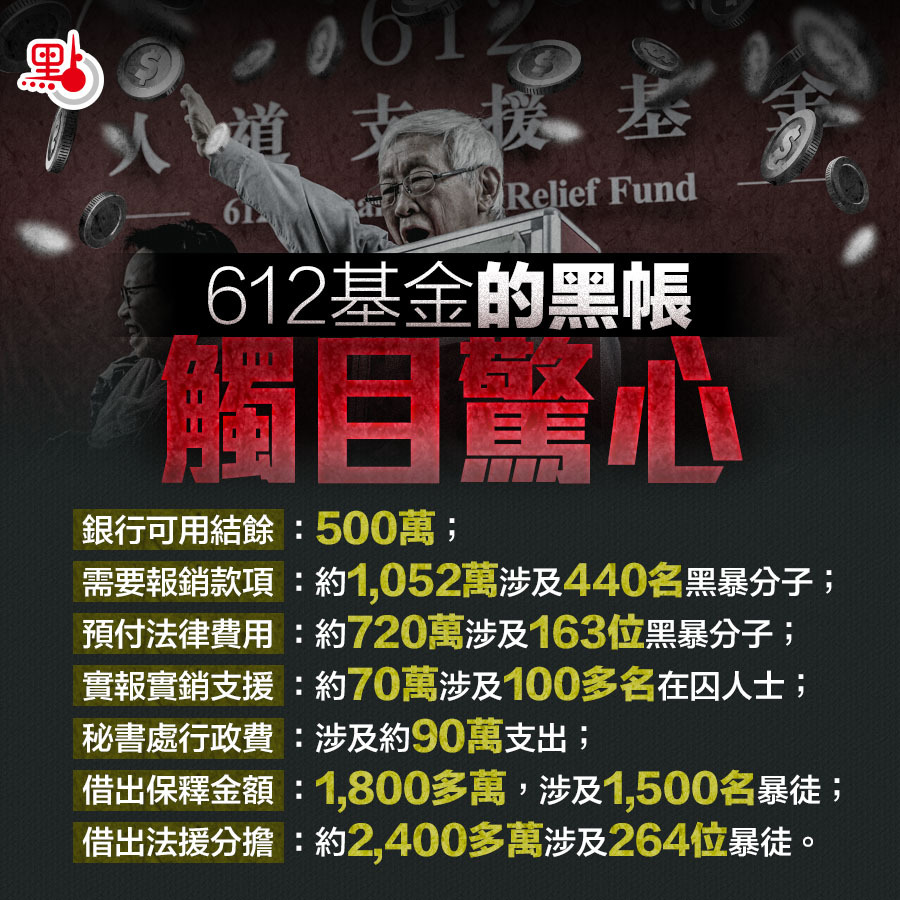「612黑暴基金」雖然宣稱將停止運作,居然聲稱還要繼續籌款2500萬,顯然毫無懸崖勒馬終止犯罪的意圖。正是612黑暴基金的極力煽惑鼓動與慷慨資助,才使得更多的無後顧之憂的暴青衝鋒陷陣,走上「違法達義」的邪惡之路。612黑暴基金縱然停止運作,亦不能洗脫其過往的深度參與黑暴犯罪行徑的違法犯罪責任,執法機構應該依據其犯罪事實追究個人之法律責任。