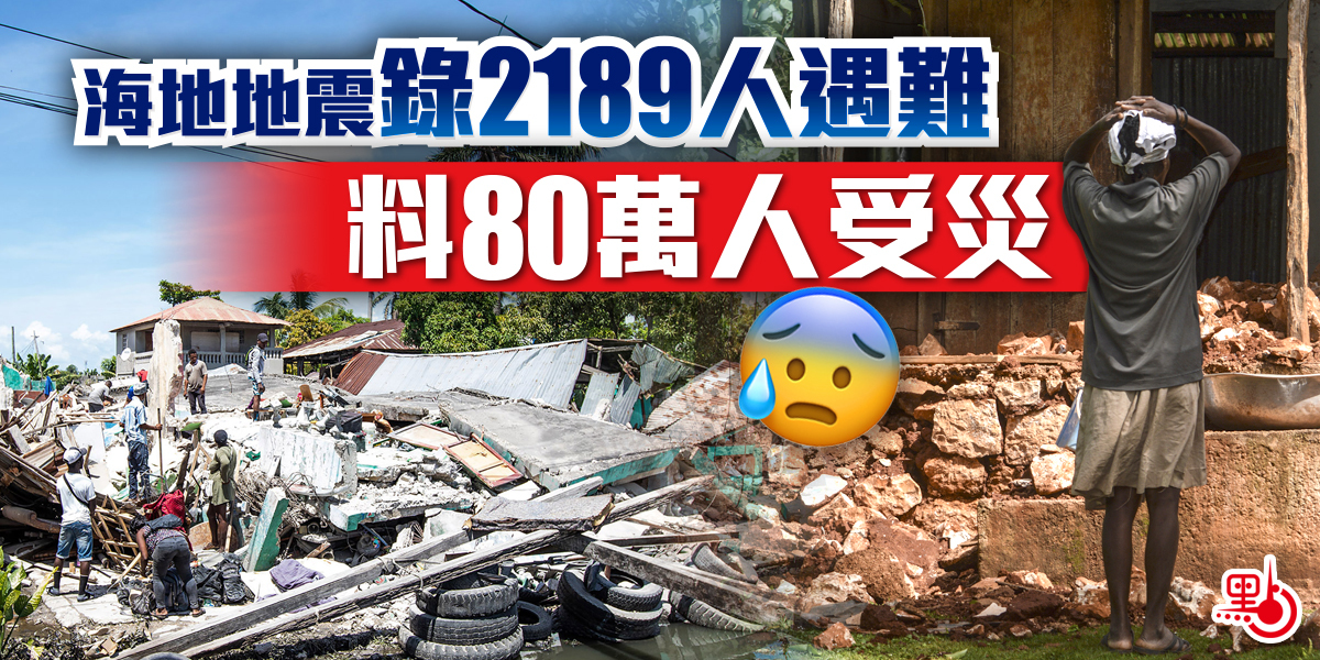 海地7.2級地震,當局民防部門最新通報死亡人數增至2189人,超過1.2萬人受傷,另外有不明數目的人失蹤,搜救工作仍在進行。是次地震至少造成13.5萬個家庭流離失所,60萬人急需人道救援。香港紅十字會國際及賑災服務主管潘曉怡今日(19日)在一個電台節目指,當地受災人數最終可能達到80萬人。