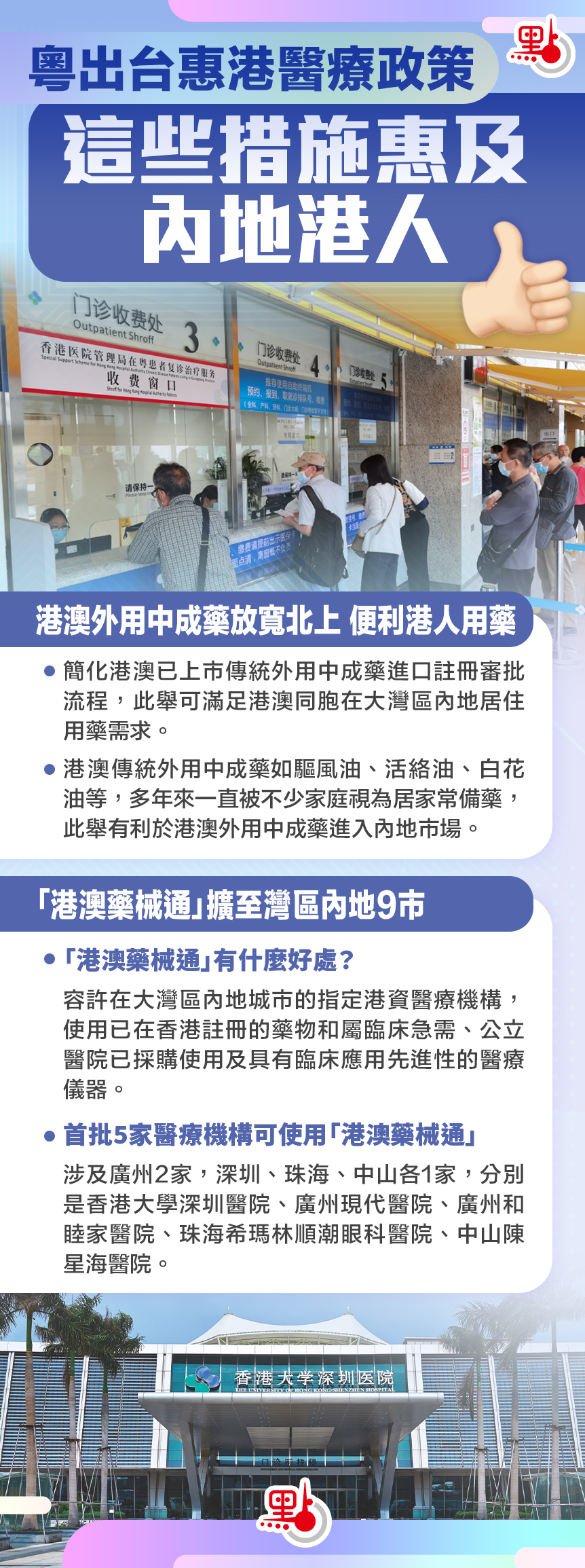 廣東省藥品監管局聯合廣東省衞健委今日(27日)召開新聞發布會,公布多項惠港醫療政策,包括簡化港澳已上市傳統外用中成藥進口註冊審批流程,為在內地工作生活的港澳同胞提供購藥便利;「港澳藥械通」擴展至大灣區內地9市,首批落地5間醫療機構等。點新聞為您整理了惠港醫療政策的要點,快來睇下!