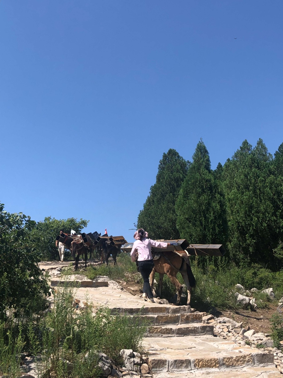 在濟南蚰蜒山頂,記者追上了馬幫,也終於見到了「幫主」庹麥梅。她戴着一個大大的遮陽帽,滿臉汗水,粉色的上衣沾滿了灰。庹麥梅是廣西百色人,是一名「85後」,但已經從事13年的馬幫工作了。庹麥梅和她的「馬幫」足跡幾乎遍布全國,凡是車輪無法到達的地方,都是她的馬幫開闢道路的「戰場」。