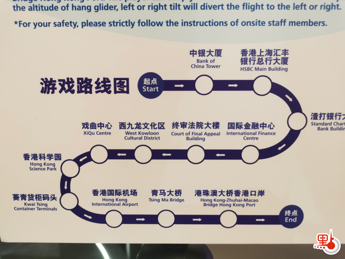在「香港館」,觀眾玩家可透過控制桿來控制飛行路線,提高或降低控制桿能調教飛行高度,左右傾斜能往左右移動。通過上述「體驗式」互動體驗,進一步了解香港服務業在「一帶一路」倡議及粵港澳大灣區發展中的優勢。