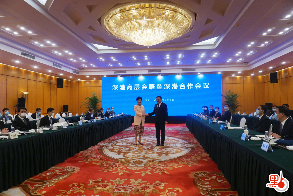 行政長官林鄭月娥今日(6日)出席深港高層會晤暨2021年深港合作會議,與深圳市委書記王偉中等深圳官員會面。林鄭月娥在會上表示,目前全港市民盼望早日逐步有序並免檢疫到訪內地。