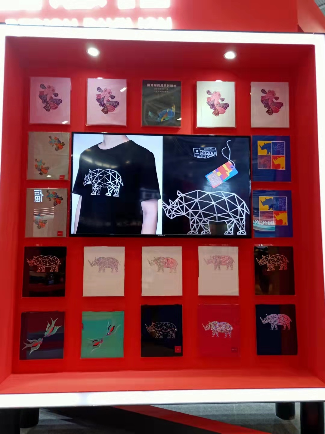 點新聞記者在香港展台看到,平面圖和視頻展示了香港設計師設計的國家博物館衍藝品,如帶生效牛元素的腕錶、國博陶鼎鷹系列頸枕、購物袋,以及旗袍、變身袋、防潑水包、三合一頸枕等產品。另外還展示了香港設計師在建築、室內裝飾、動畫方面的設計作品。