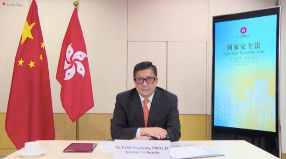 鄧炳強說:「回想起去年國安法落地時,一些國家刻意抹黑國安法,甚至干涉我們要求廢除國安法。更可笑的是,這些國家都有自己的國安法,而且國安法比香港的更嚴格、範圍更廣。我找不到比『雙重標準』更好的詞來描述這些國家了。要真正讓香港實現長期穩定和安全,必須繼續貫徹香港國安法,堅持『一國兩制』原則,完善香港特別行政區選舉制度,全面落實『愛國者治港』原則」。