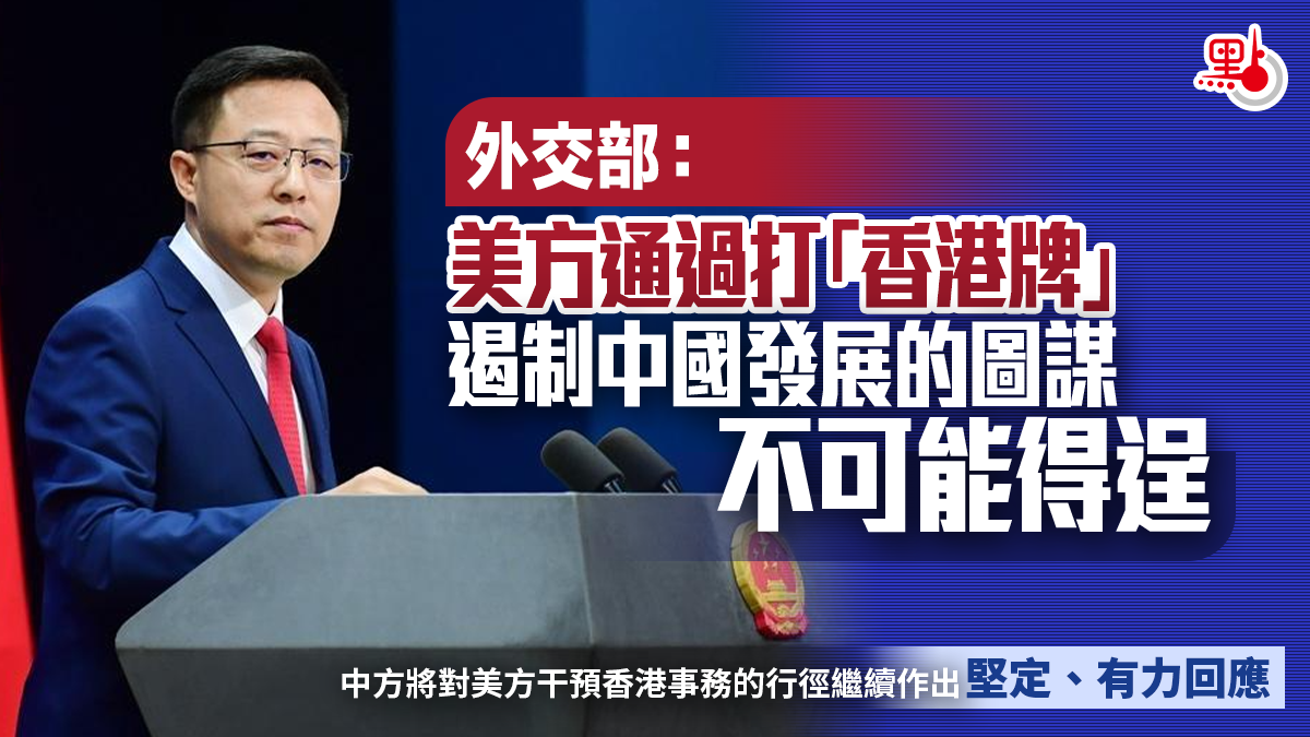 趙立堅指出,制定和實施香港國安法,完善了香港的法治,恢復了香港的安全和穩定,保護了香港居民的正當合法權益,推動香港迎來由亂轉治的新局面。他強調,美方通過打香港牌,破壞香港繁榮穩定,遏制中國發展的圖謀不可能得逞。
