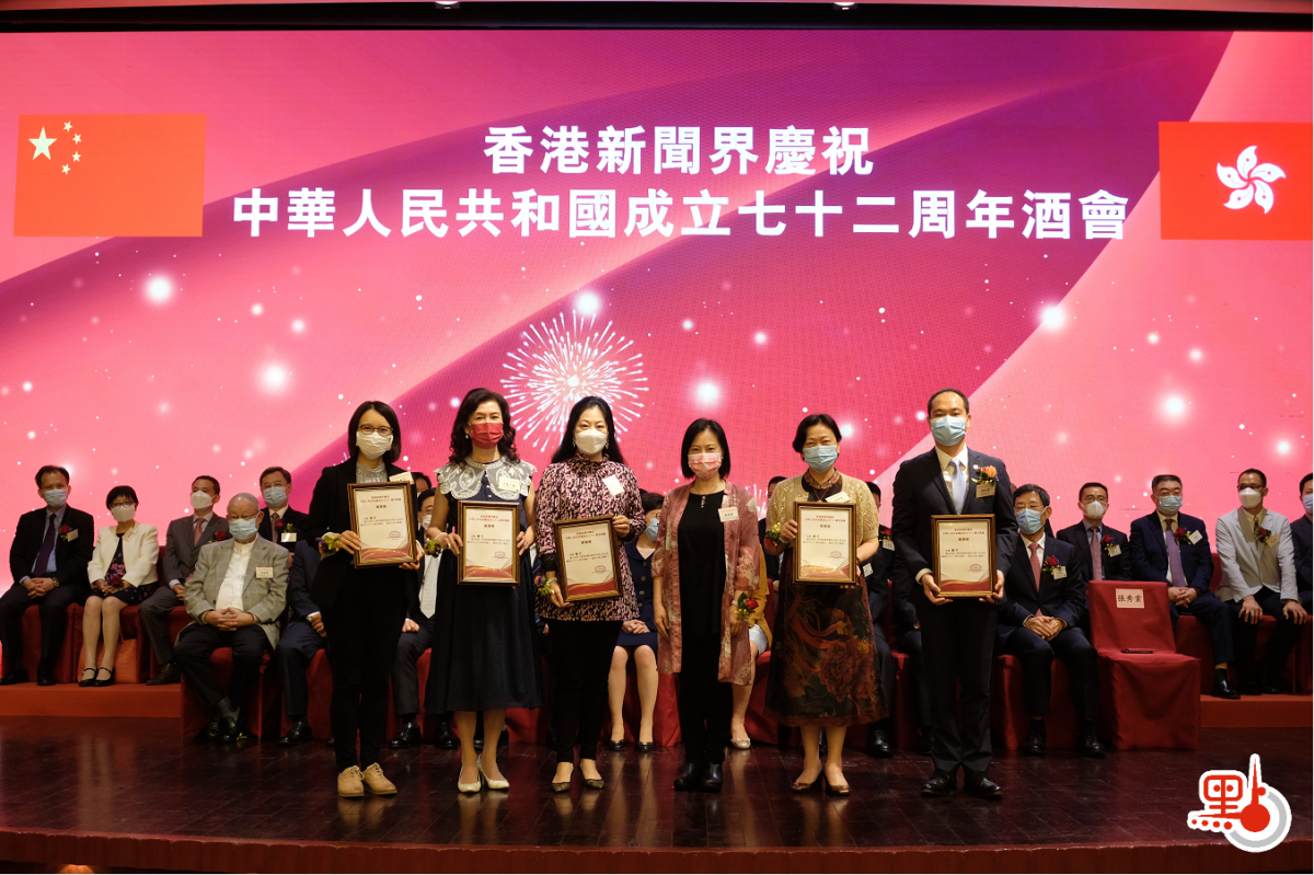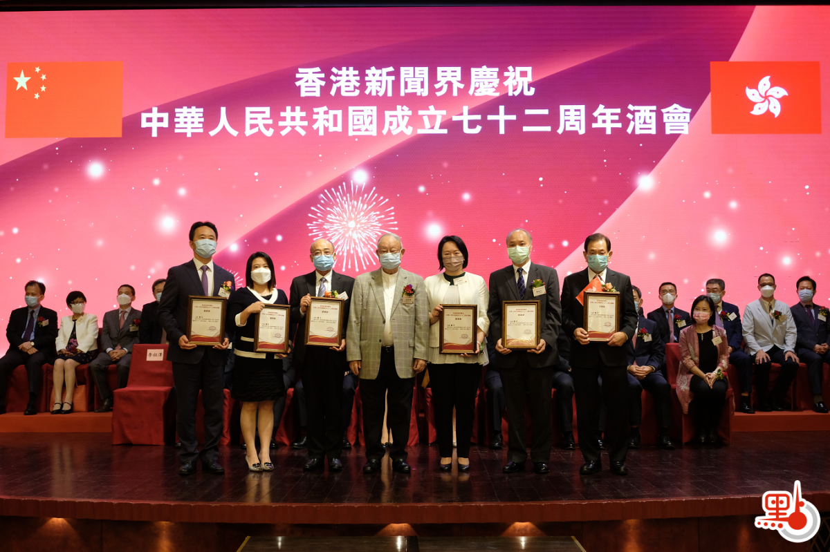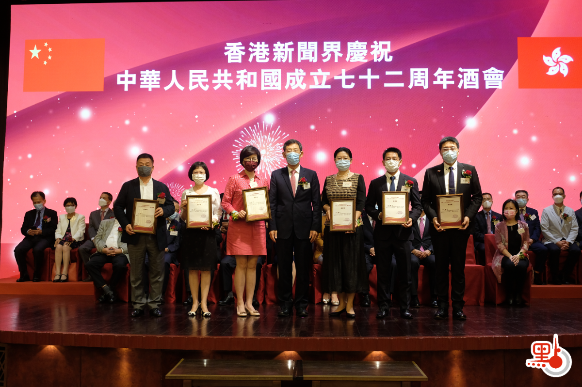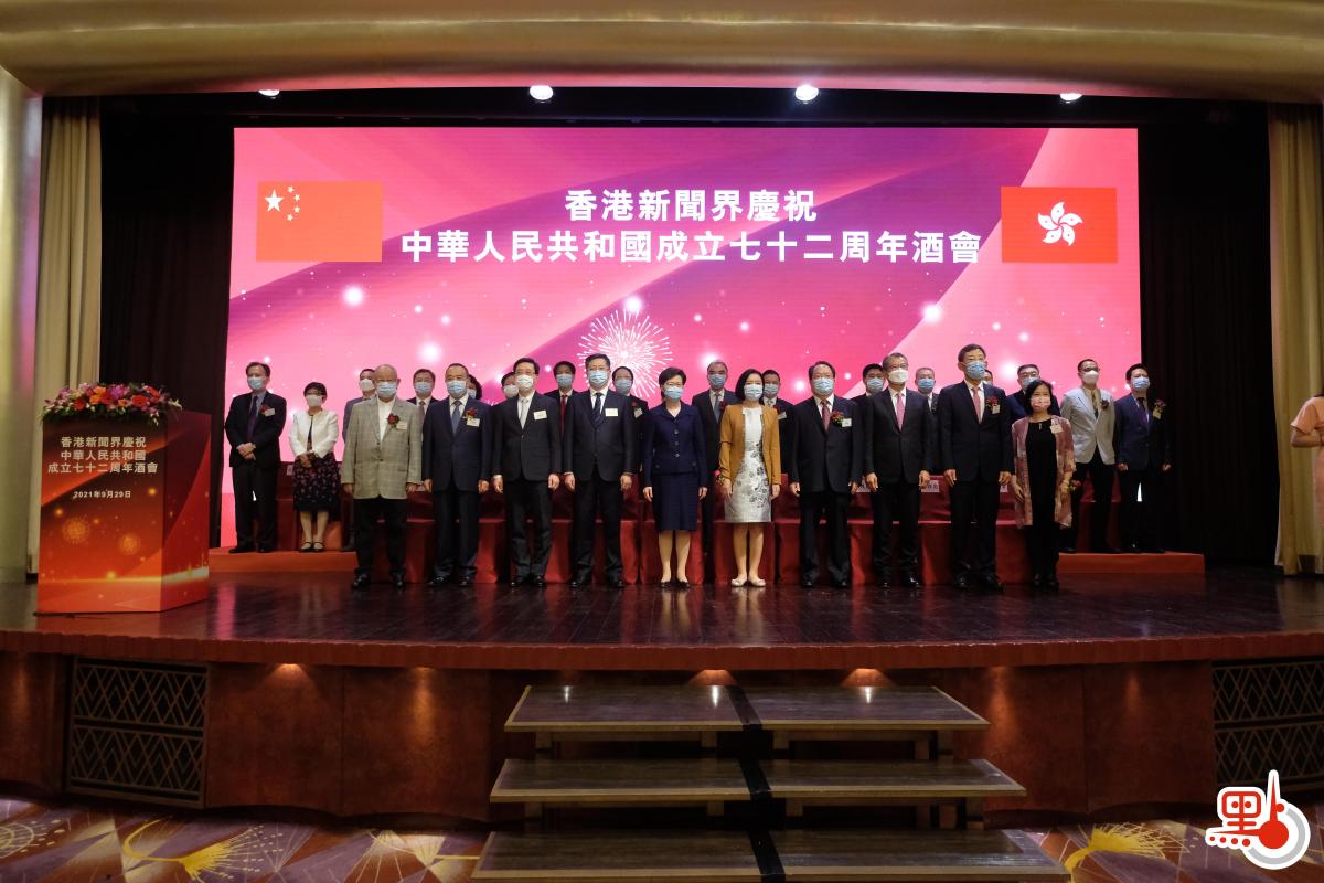 香港新聞界慶祝中華人民共和國成立72周年酒會今日(29日)在港隆重舉行。香港特區行政長官林鄭月娥,香港中聯辦副主任盧新寧,駐港國安公署副署長李江舟,外交部駐港公署副特派員潘雲東,香港特區政府政務司司長李家超,財政司司長陳茂波,紫荊文化集團有限公司董事長毛超峰,全國政協委員、香港大公文匯傳媒集團董事長、香港新聞界慶祝國慶籌備委員會執委會主席姜在忠等擔任主禮嘉賓。