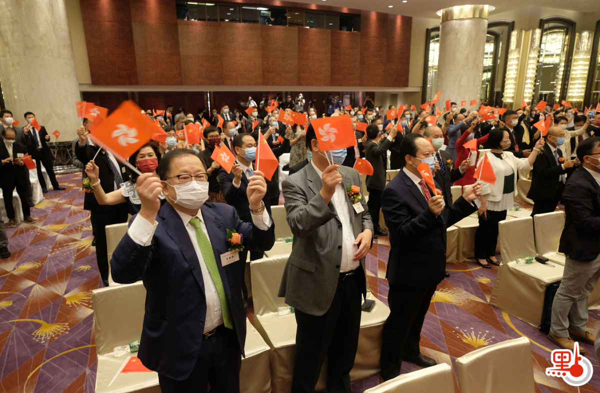 酒會上,全場嘉賓以揮舞國旗區旗的方式表達對祖國生日的祝福,祝願祖國母親生日快樂,祝福偉大祖國繁榮昌盛、國泰民安。