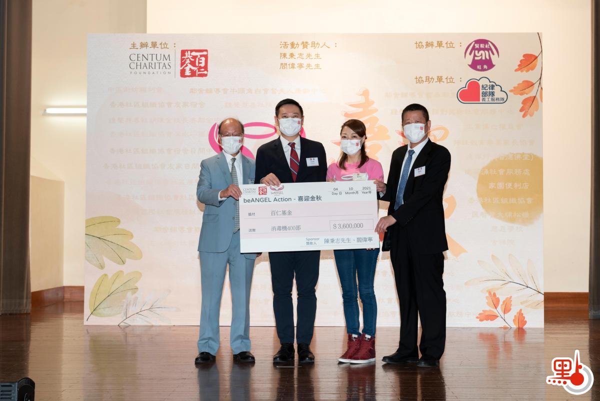 此次活動是在百仁基金副會長羅詠詩推動下,獲好友亞美磁帶有限公司主席陳秉志及港區省級政協委員、兩岸和平發展聯合總會副會長閻偉寧共同送出400部市值360萬港元的空氣消毒機予百仁基金,並轉贈予本港18區社福機構,作室內活動場地滅殺病菌及淨化空氣之用,使各街坊能在更加潔淨的空氣下開展活動。