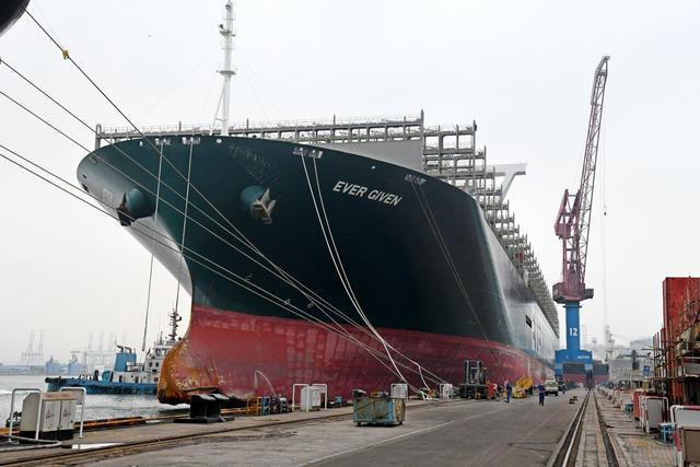 在蘇伊士運河擱淺造成世紀大堵塞的巴拿馬籍裝箱船「長賜」號貨輪近日抵達山東青島海域,並於10月4日在海事部門的保障下安全靠泊青島北船重工修船分廠,開展維修工作。