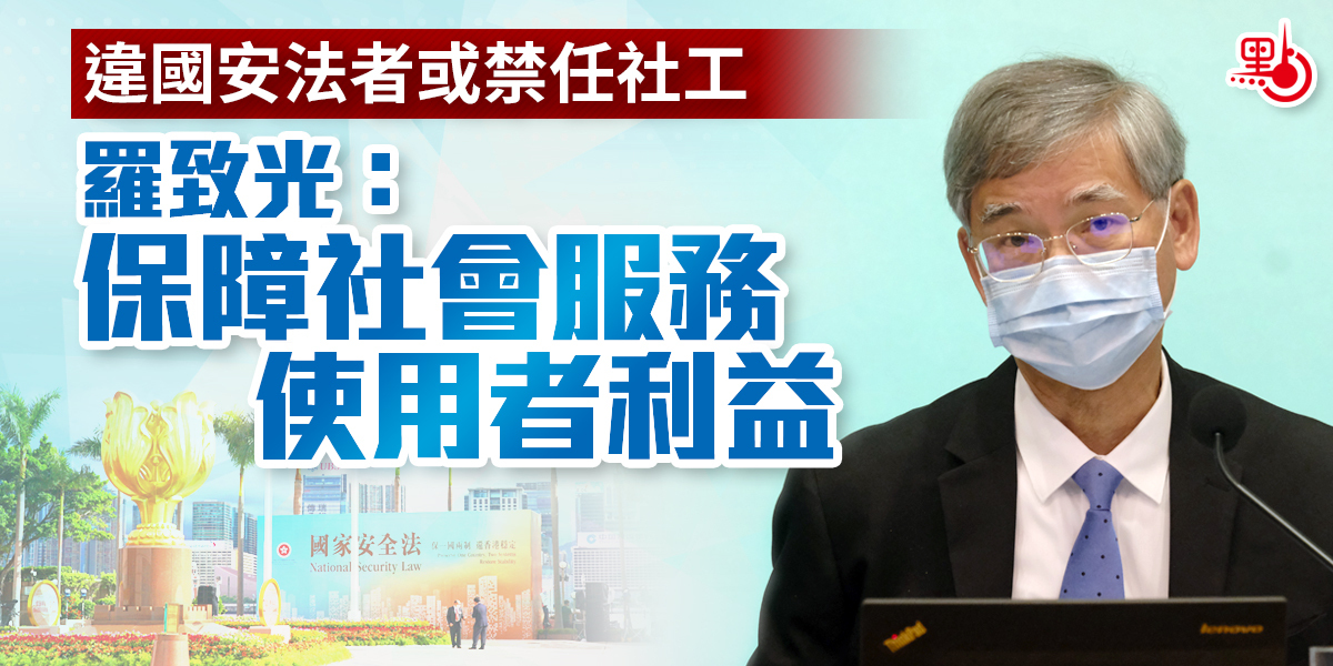 政府建議修訂《社會工作者註冊條例》附表2,如被裁定犯下危害國家安全罪,則不能擔任註冊社工,計劃向下屆立法會提交修例草案。勞工及福利局局長羅致光今日(11日)在立法會一個委員會強調,國安法下,當局需維護社工誠信及專業形象,保障社會服務使用者利益,因此建議有關修訂。