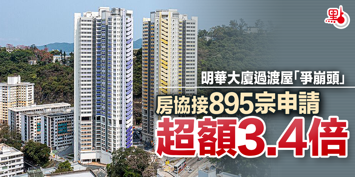 筲箕灣明華大廈正進行重建工程,屬於第三期重建計劃的A至E座預計將於2028年開始重建,香港房屋協會將其中空置單位翻新用作過渡性房屋,提供合共約200個「暫租住屋」單位,於上月23日開放給輪候公屋3年或以上的2至4人家庭申請,並於本月6日截止。房協於今日(11日)宣布,共收到895宗申請,當中包括2人家庭共接獲327宗申請;3人家庭共有332宗申請;4人家庭共有236宗申請,即超額申請約3.4倍。