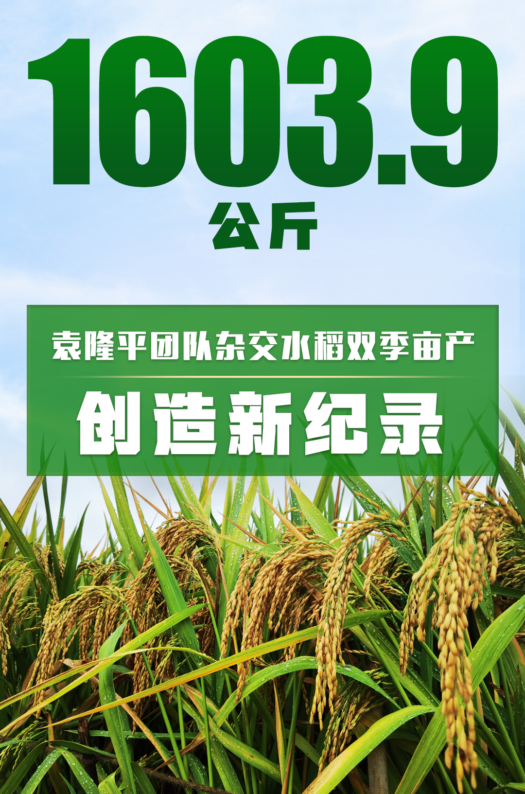 今日(17日),國家雜交水稻工程技術中心(湖南雜交水稻研究中心)在湖南省衡南縣開展2021年南方稻區雙季畝產1500公斤攻關測產驗收,測得晚稻平均畝產為936.1公斤。加上此前測得的早稻平均畝產667.81公斤,由「雜交水稻之父」袁隆平團隊研發的雜交水稻雙季測產為1603.9公斤,成功突破畝產1500公斤目標,並創造新的紀錄。